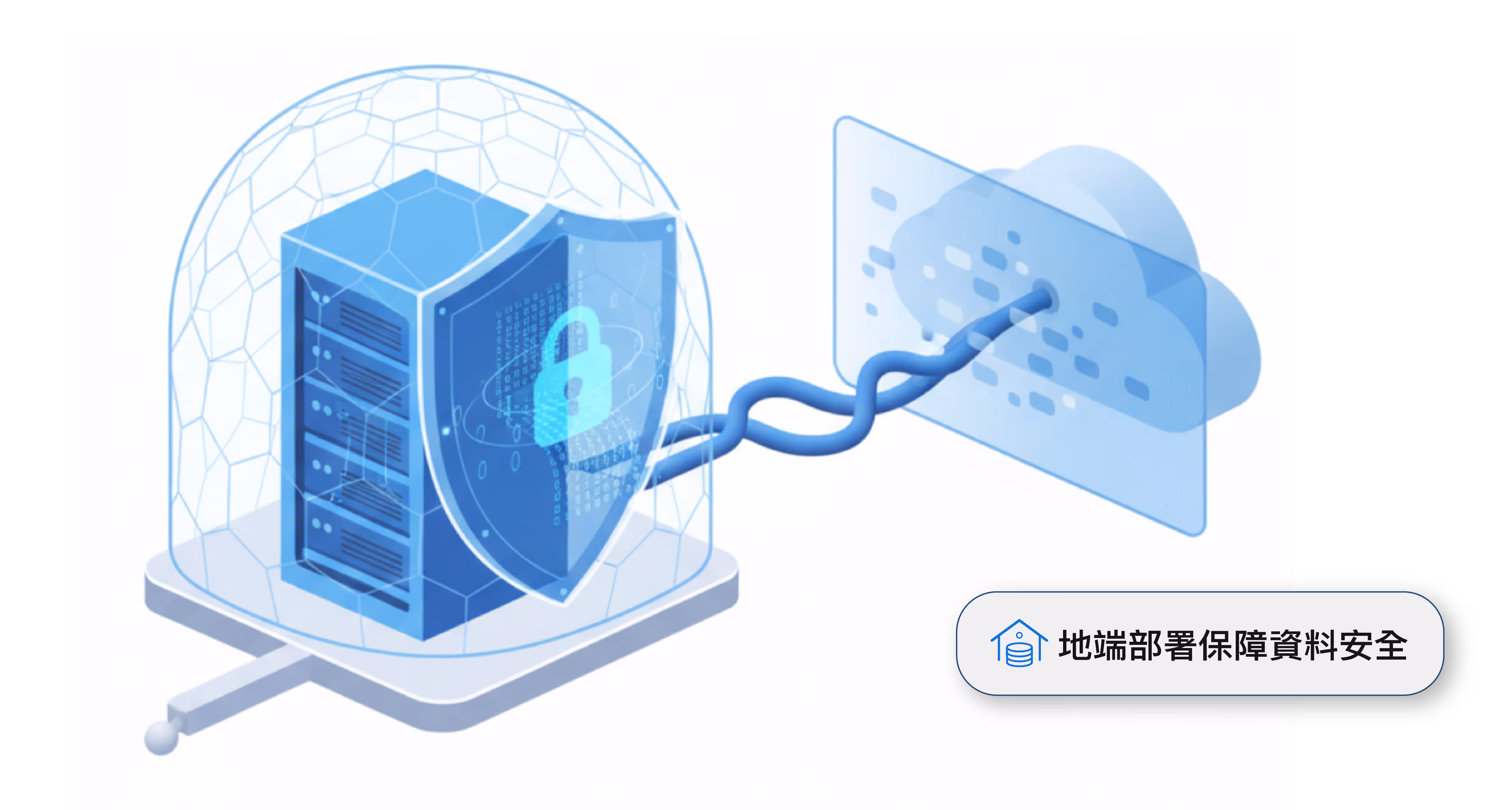 支援地端部署與客製化套件,確保敏感資料與核心技術完全保留在企業內部,滿足嚴格的資安與合規要求